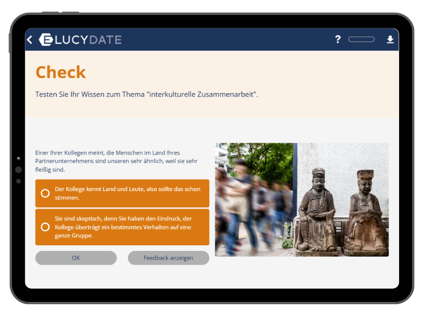In unserem E-Learning-Kurs „Interkulturelle Kompetenz“ lernst du, wie du kulturelle Unterschiede besser verstehst, mit Offenheit und Respekt begegnest und Brücken zwischen verschiedenen Perspektiven baust. Du erfährst, wie du interkulturelle Zusammenarbeit aktiv gestaltest und ein faires, wertschätzendes Miteinander förderst – im Team, im Unternehmen und darüber hinaus.