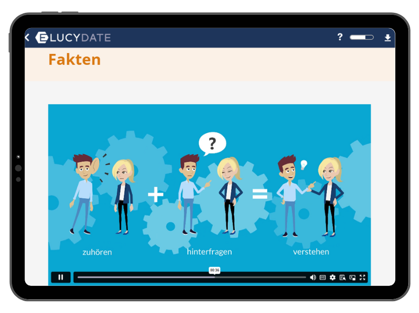In unserem E-Learning-Kurs „Konflikte managen“ lernst du, wie du Konflikte frühzeitig erkennst, souverän darauf reagierst und auch schwierige Situationen konstruktiv meisterst. Außerdem erfährst du, wie du mit Sprache, Haltung und gezielten Fragen eine faire Gesprächsbasis schaffst.