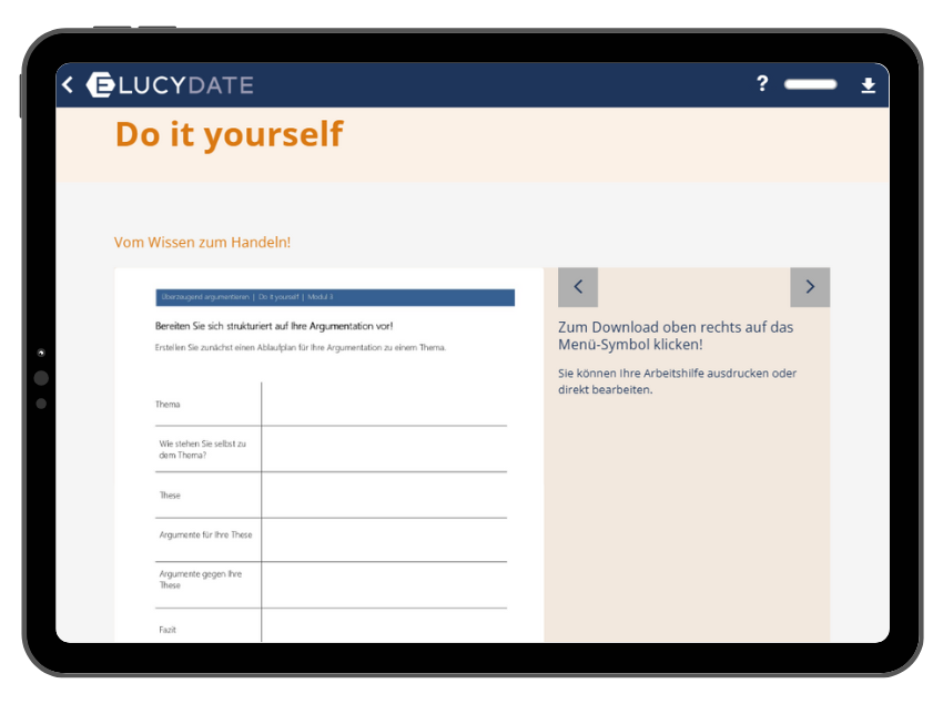 Schau dir den Kurs mit unserem kostenlosen Testzugang am besten direkt selbst an und erfahre, wie du mit klarer Struktur und Einfühlungsvermögen überzeugend argumentierst.