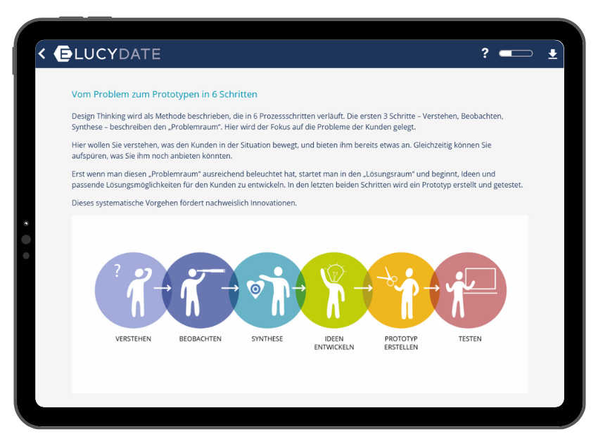 In unserem E-Learning-Kurs „Design Thinking“ lernst du, wie du mit interdisziplinären Teams innovative Ideen entwickelst, den Kunden konsequent einbeziehst und kreative Prozesse gezielt steuerst. Du erfährst, wie du Raum für neue Denkweisen schaffst und dabei strukturiert und lösungsorientiert vorgehst.