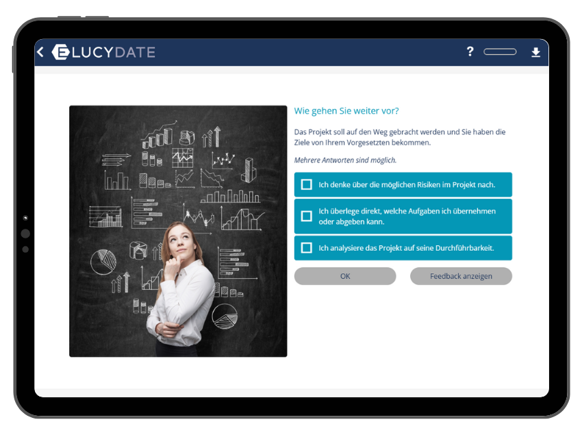 Tauche ein in die digitale Lernwelt von ELUCYDATE und erlebe eine exzellente Auswahl an berufsrelevanten Online-Trainings. Erfahre außerdem, wie einfach du mit wenigen Klicks dein Weiterbildungsmanagement digitalisierst.