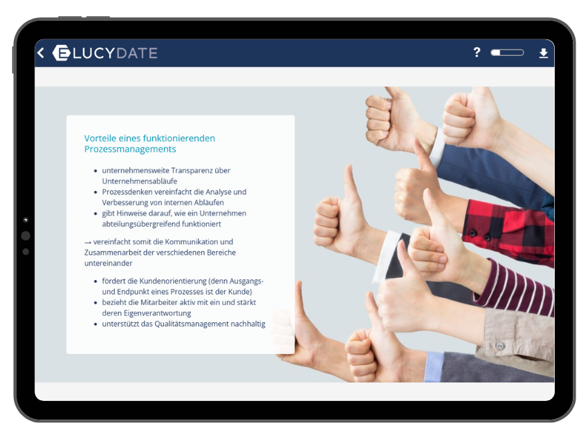 In unserem E-Learning-Kurs „Prozessverständnis entwickeln“ lernst du, wie du Prozesse sichtbar machst, strukturiert dokumentierst und gezielt steuerst. Du erfährst, warum Prozessmanagement so wichtig ist, wie du Wertschöpfungspotenziale erkennst und welche Rolle Organisation und Technik dabei spielen. So entwickelst du ein ganzheitliches Verständnis für Abläufe – und kannst sie aktiv mitgestalten.