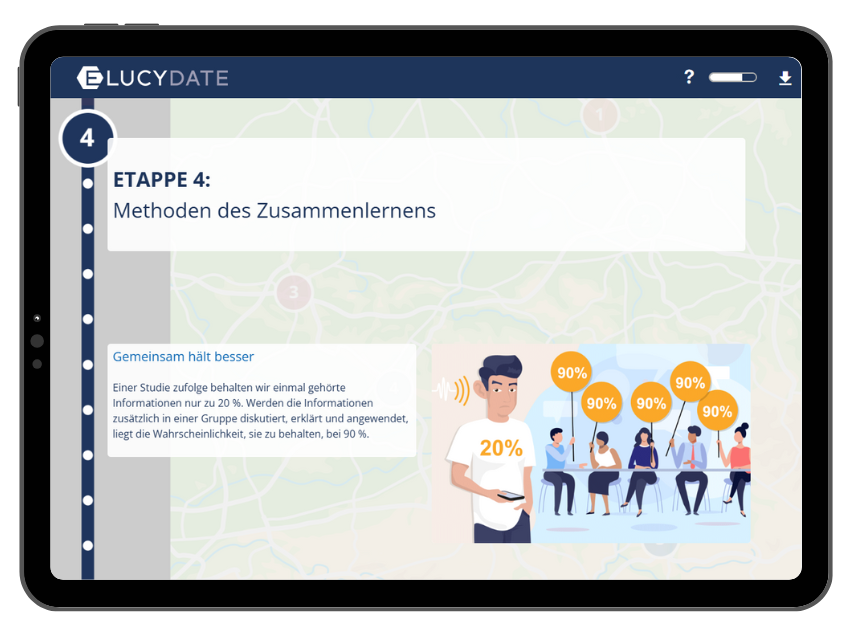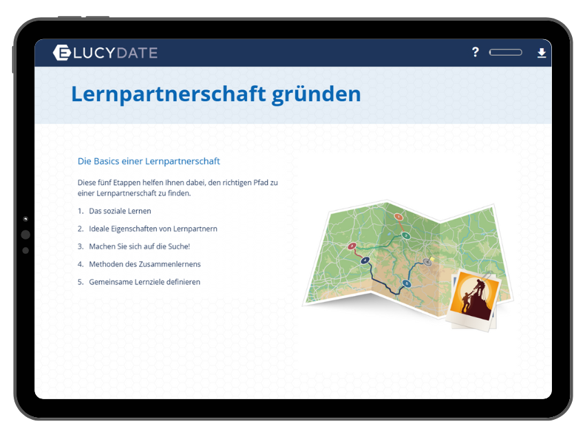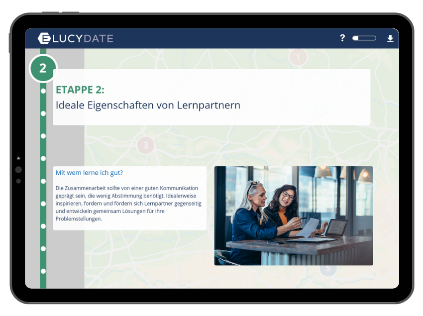 In unserem E-Learning-Kurs „LernPARTNER“ erfährst du, warum gemeinsames Lernen so wirksam ist und welche Eigenschaften ein guter Lernpartner mitbringen sollte. Du lernst Methoden des Zusammenlernens kennen, definierst gemeinsame Lernziele und bekommst Impulse, wie du aktiv auf die Suche nach einem passenden Lernpartner gehst.