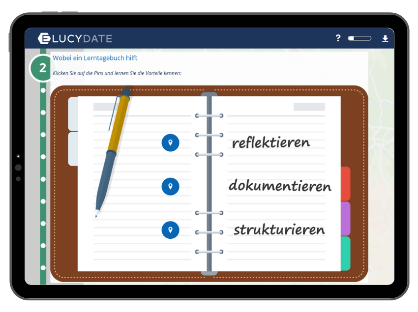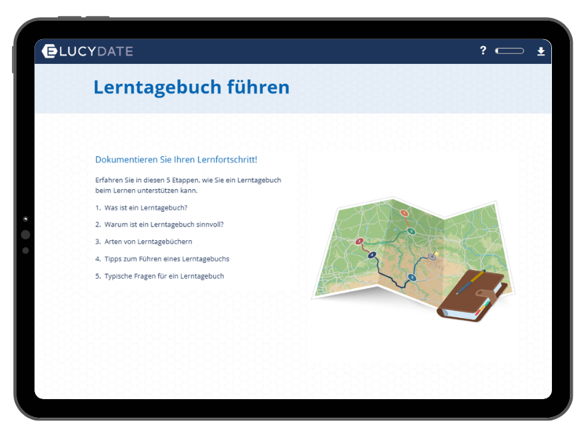 Schau dir den Kurs mit unserem kostenlosen Testzugang am besten direkt selbst an und lass dich inspirieren, wie ein Lerntagebuch dich bei der Umsetzung deiner Lernziele unterstützen kann.