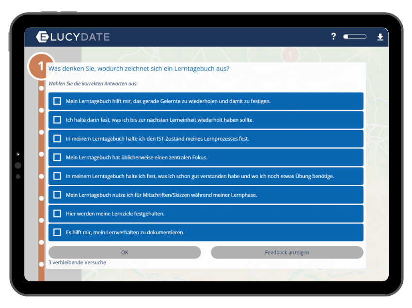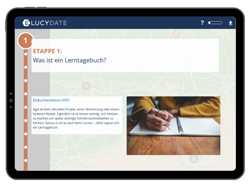 In unserem E-Learning-Kurs „LernTAGEBUCH“ erfährst du, wie du mit einfachen Mitteln deinen Lernweg dokumentierst und gezielt analysierst. Du lernst verschiedene Formen von Lerntagebüchern kennen und bekommst praktische Tipps zum Führen deines Tagebuchs. So stärkst du deine Selbstwahrnehmung und entwickelst ein tieferes Verständnis für deine individuellen Lernmuster.
